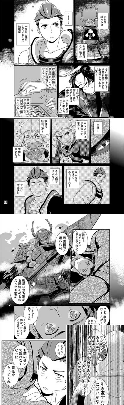 2014/01/11 Category : オフライン情報 【インテ新刊】今は同じ傘の下 2014/1/12のインテ新刊です B5/44P小さい殿と三成さんメインの傘下時代関ヶ原本です。ずっと書きたかったネタを3年越しでやっと描けました。更新できてなかったこの漫画の続きも入ってます。三家と胸をはって言える本にしたかったのですが結局コンビ描写くらいに留まってしまいました。ぐぬぬぬ
