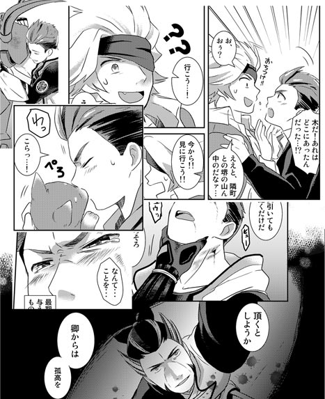 2012/06/14 Category : 未選択 謹言十二鼓 新刊 謹言十二鼓で出るはずの新刊です。新刊:廻っても廻っても(本文20P/A5)■表紙■本文サンプル一応鉄壁主従本と言い張っているのですが、ただかつ本体がほとんどでてこないという(…)。どういうことなの。調子にのって何故か本文にもカラーページがあります。前半は松永さんが絡んだお話し、後半は転生?現パロでアニキと一緒です。短編2本。表紙もなんですけど、本文カラーの印刷がどうでるか気が気でありません…。いらんことはするもんでないなーと思いました。楽しかったけど。