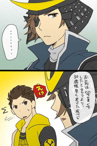2010/10/16 Category : ├ 漫画 【漫画】独眼竜といえやす ちっさいえやすが3いえやすみたいに成長するのは、やっぱありかなぁと思います。ただ、期間が短いからやっぱ違和感感じるんだろうなぁと。酸いも甘いも噛分けまくって成熟した感じ。なんか足りないと思ったら、伊達の兜の紐がない