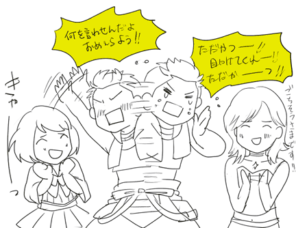 2010/10/29 Category : ├ いえやす 戦局を読む ちょっとタヌキな感じ。ガチムチ肉体派と見せかけて実は頭脳派だなんて、いえやすさんまじパーフェクト超人。あ、すいません「実は頭脳派」は私の妄想かもしれない。でも私の脳内ではそうなってる!で、三成の方が頭脳派っぽくみせて実はバリバリ動き回る肉体派なところがまたよい。終電でくたびれて帰ってきたら、朝出かける前にいちゃこらさせたリボちかいえが相変わらずいちゃこらしていた。癒されたぜ・・・。