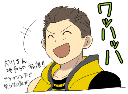 2010/10/23 Category : ├ いえやす ばさらじお感想(内容ばれ) 今更だけど、応援らぢおの、おーかわさんがゲストの回を聞いた!何か豪快な方ですね!…というか、普通のおじさん!笑いるぞ、こんな喋り方の上司(笑。でも好感度あがりました。何か地声の雰囲気がいえやすなんすよぉぉー!いえやすととみたけを足した感じw豪快に笑ったり、明るく冗談とばしたり、おやじぎゃぐを言ういえやすが聞けて幸せです。そういえば、この間久しぶりにトミタケフラッシュの歌を聞いて腹筋崩壊しました。だってどう聞いても でっかいえやすさんが歌ってんだもん。もうやめて!わたしの兵糧はゼロよ!クイズに回答するおおかわさん。即答かと思いきや、忠勝って答えて間違ってましたwくぅぅぅ…っ、なんておいしい事を…。間違ったときに「ただかつ」叫んでたんですけど でっかいえやすが全力で忠勝呼んだらこんな感じかなぁぁー恥ずかしい萌え台詞言わされて照れる大川さん。萌え台詞は必聴!(笑 いえやすと結婚したい人は絶対に聞いてください。耳が妊娠します。そのあとただかつに助けを求めててほんまかわいいぜ。これは竹千代声だった!他・男子リスナーのことも考えるおーかわさん優しいです。・つーかおーかわさん50歳なの!?もちっと若いかと思ってたよ。それで少年声かぁー。声優さんぱねぇー。・いえやすの成長について初めて聞いた時「ありえねぇだろぉ」と思ったっていってて笑いましたw またその「ありえねぇ」がいえやすっぽいしw そら自分でもびっくりだよね、いえやす
