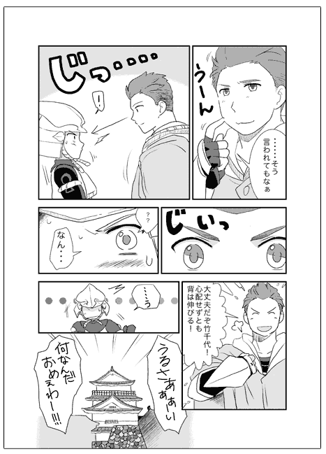 2011/08/15 Category : オフライン情報 SCC関西17(2011年8月21日) 無謀にも出陣いたします■スーパーコミックシティ関西(8/21)■インテックス大阪/6号館Aゾーン/ミ44b■サークル名:なくまと 使い回しサークルカット■発行物 徳川クロニクル(本文56P)500円こんな感じで家康大小がうだうだやってる本出ます。家康小の時間軸に、家康大がやってくるお話し。見事に家康しかいない。若干ほのぼのっぽく、基本的にはたんたんとシリアス?ハッピーエンドかどうかは若干微妙かもしれないですが、私的にはポジティブに描いたつもり。CP要素はないつもりですが、小→大っぽくなってしまったかもしれないです。あと、ちょっとだけ鉄壁。全年齢。慣れないこともあって拙いです。ご了承をいただけますれば…。