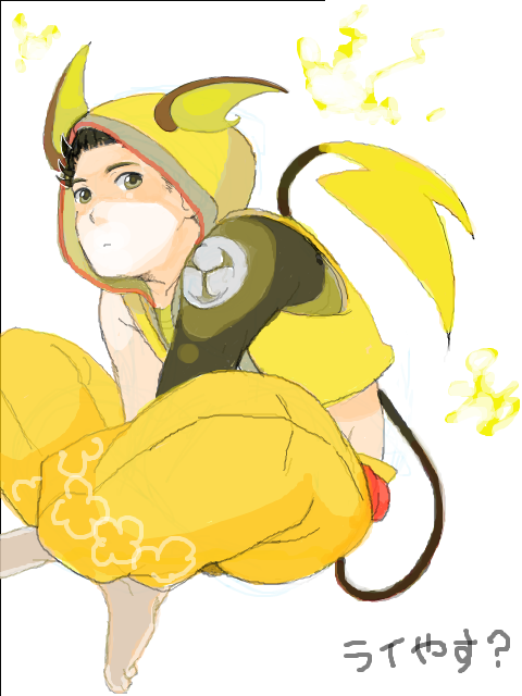2011/02/24 Category : ├ いえやす ライやす あまり更新できていないので、昔の遺産を食いつぶす作戦に打って出る。いえやすさんを描き始めてすぐの頃くらいの絵を引っ張り出しました。2の頃から、家康はピカチュウだ!と主張し続けてきたので(身内で)当然それが進化したからライチュウになるのです。という、ままありがちなネタ。そんなん捕獲するしかない。