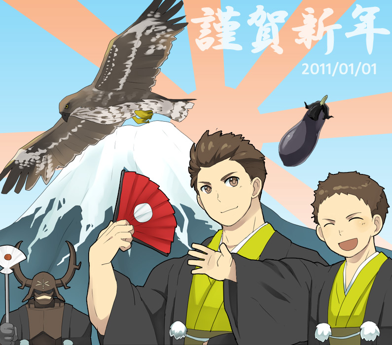 2011/01/02 Category : ├ いえやす いえやすさんの好きなもの詰め合わせ 無駄に重いかも。いえやすさんの大好きなもの詰め合わせたよいえやすさーん。もちろん忠勝もだよ。一富士・二鷹・三茄子・特別枠忠勝 だよ。サイト作った時から正月TOPはこれだって決めてました。正直、年越せるかなってちょっと思ってたけど、越せたみたいです。これでわしはもう感無量だ。小さいとき、初めてこの初夢縁起物の話を聞いた年の初夢で全部揃った夢を見たような記憶があります。でもよくよく考えてみると鷹じゃなくて鳶だったかもしれないし、茄子じゃなくてトマトだったような気もする。そして、その年いいことがあったかどうかは覚えてない。そんなもんだ!そして縁起物よりいえやすさんの夢が見たいです宜しくお願いします。それにしてもいえやすさんが茄子好きなんて言ったら、そんなもう。エロい意味にしか受け取れないそんなもう。今年の抱負:もっと鉄壁を萌やす!悪と遅筆は削除する!自重しない!